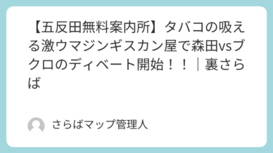 【五反田無料案内所】タバコの吸える激ウマジンギスカン屋で森田vsブクロのディベート開始!!|裏さらば