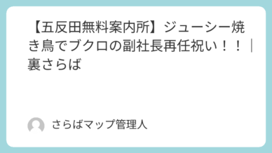 【五反田無料案内所】ジューシー焼き鳥でブクロの副社長再任祝い!!|裏さらば