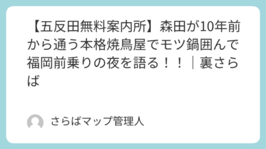 【五反田無料案内所】森田が10年前から通う本格焼鳥屋でモツ鍋囲んで福岡前乗りの夜を語る!!|裏さらば