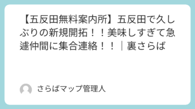 【五反田無料案内所】五反田で久しぶりの新規開拓!!美味しすぎて急遽仲間に集合連絡!!|裏さらば