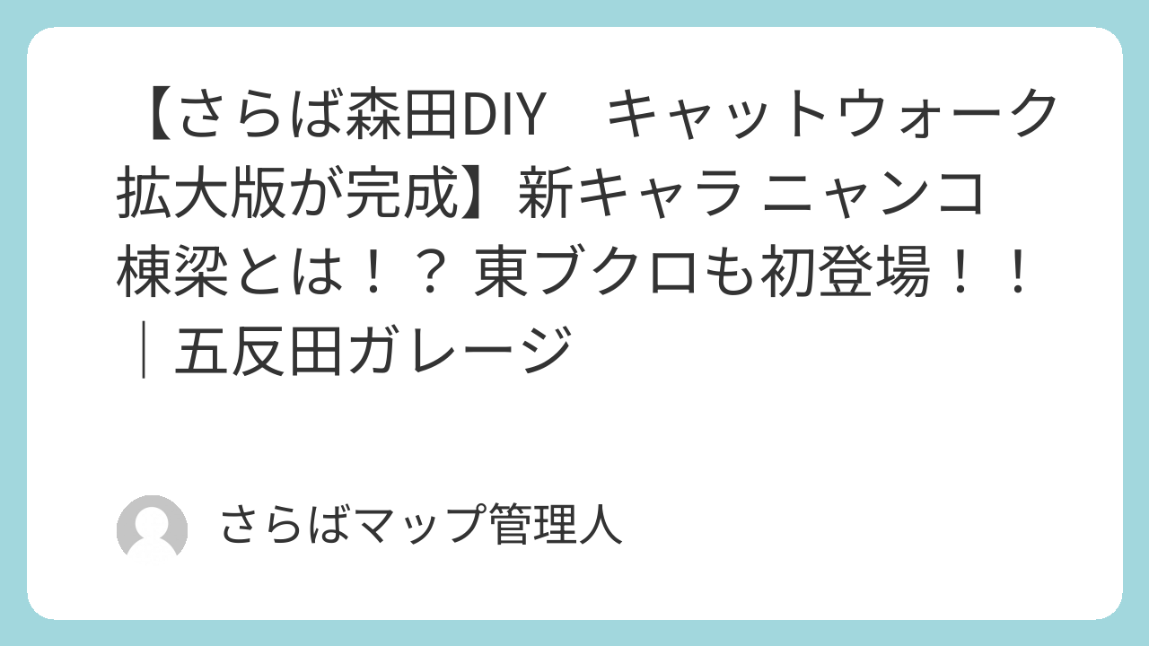 【さらば森田DIY キャットウォーク拡大版が完成】新キャラ ニャンコ棟梁とは!? 東ブクロも初登場!!|五反田ガレージ