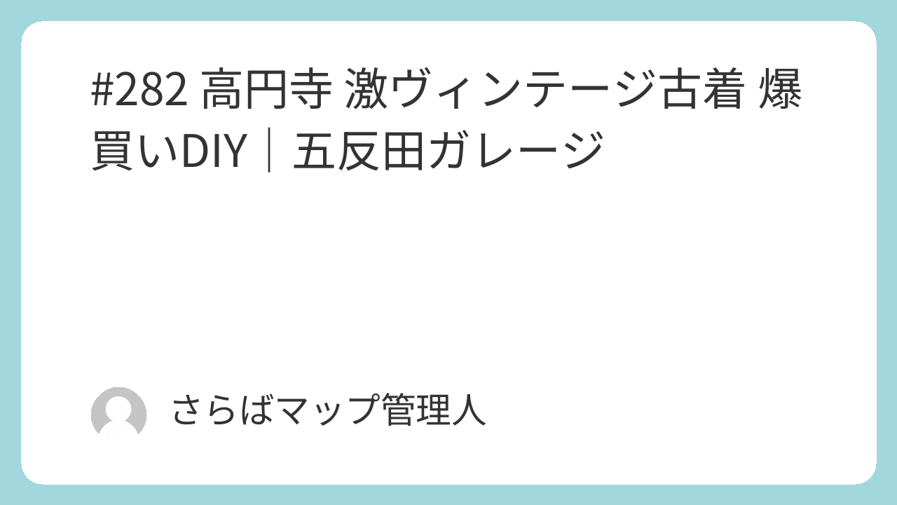 本記事では、さらば青春の光・森田哲矢さんのYouTubeサブチャンネル「さらば森田の五反田ガレージ」の動画「#282 高円寺 激ヴィンテージ古着 爆買いDIY」で訪れたロケ地・撮影場所・訪問スポットをまとめています。