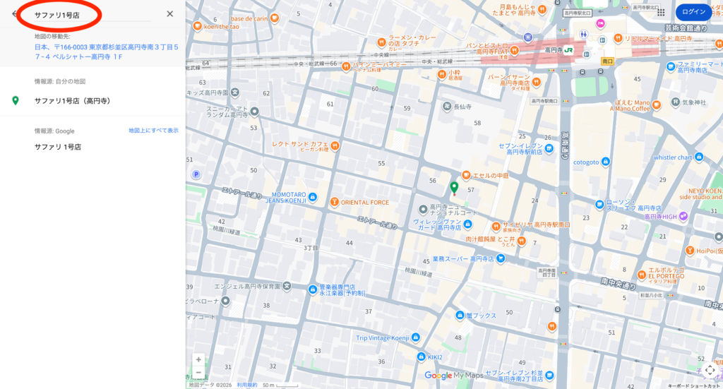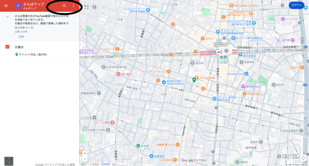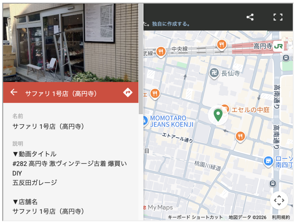 古着店や飲食店など、動画で登場した場所をマップから探すことができます。