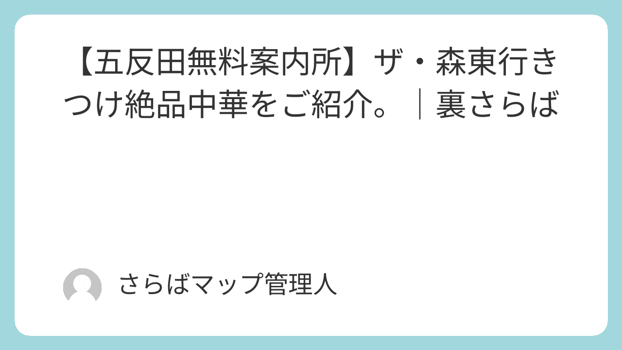 本記事では、さらば青春の光のYouTubeサブチャンネル「裏さらば」の動画「【五反田無料案内所】ザ・森東行きつけ絶品中華をご紹介。」で訪れたロケ地・撮影場所・訪問スポットをまとめています。