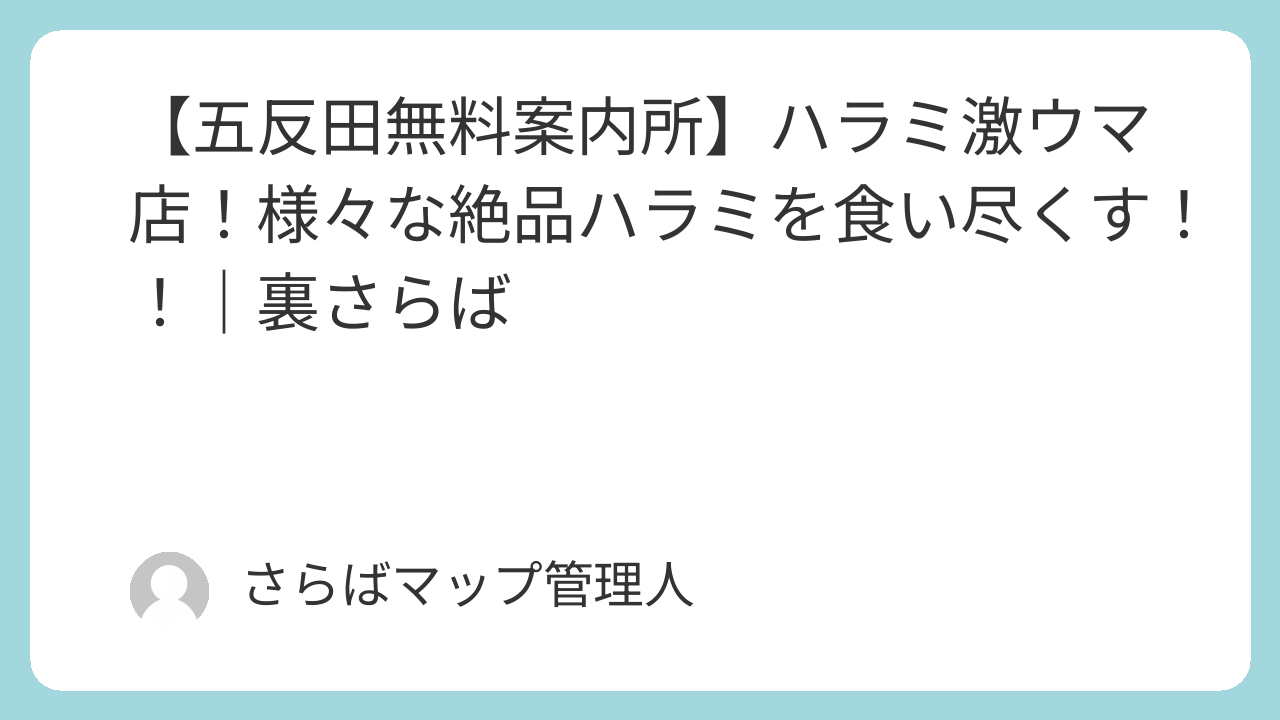 本記事では、さらば青春の光のYouTubeサブチャンネル「裏さらば」の動画「【五反田無料案内所】ハラミ激ウマ店!様々な絶品ハラミを食い尽くす!!」で訪れたロケ地・撮影場所・訪問スポットをまとめています。