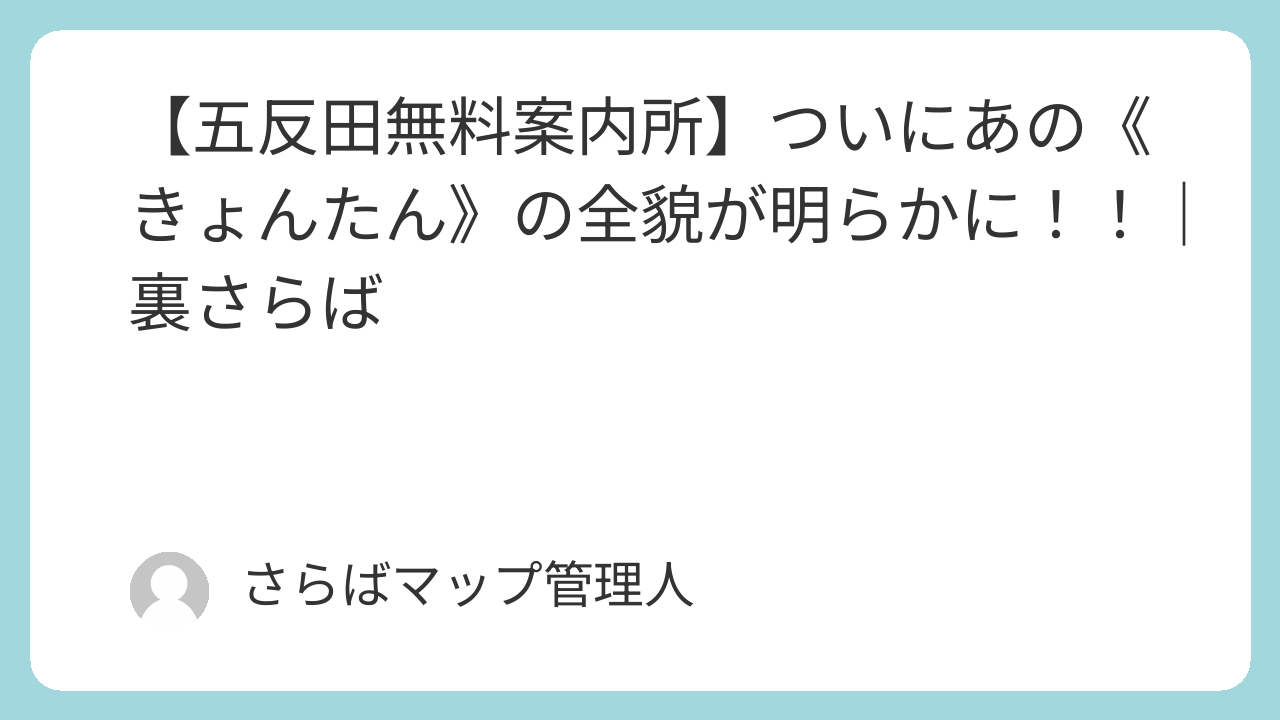 本記事では、さらば青春の光のYouTubeサブチャンネル「裏さらば」の動画「【五反田無料案内所】ついにあの《きょんたん》の全貌が明らかに!!」で訪れたロケ地・撮影場所・訪問スポットをまとめています。