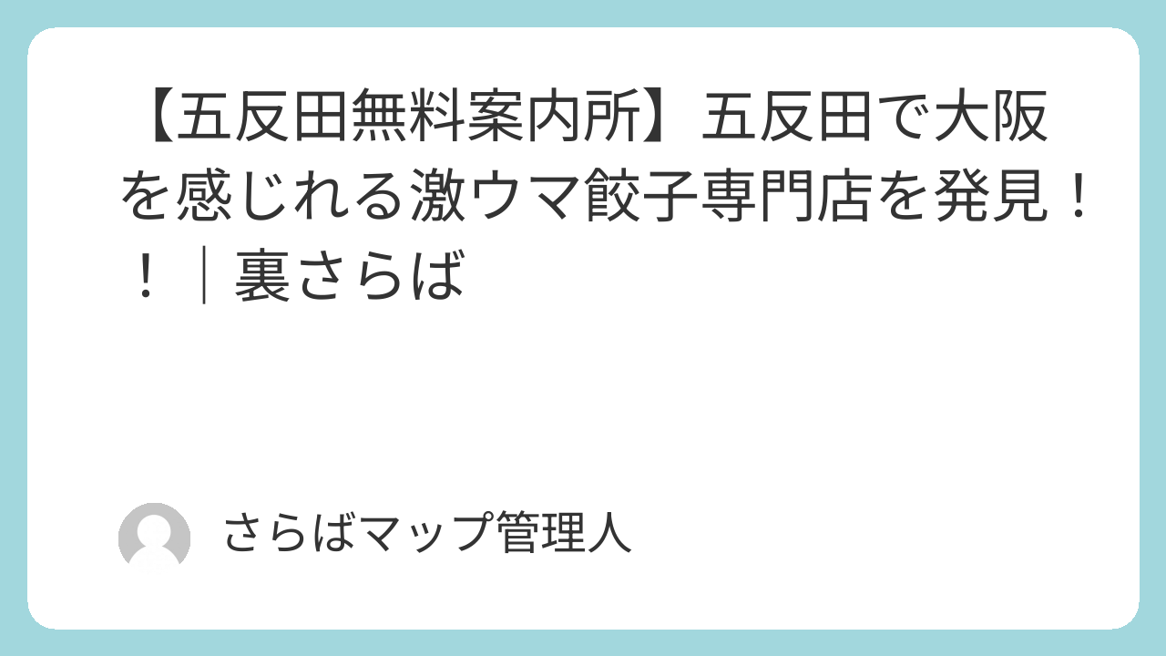 【五反田無料案内所】五反田で大阪を感じれる激ウマ餃子専門店を発見!!|裏さらば